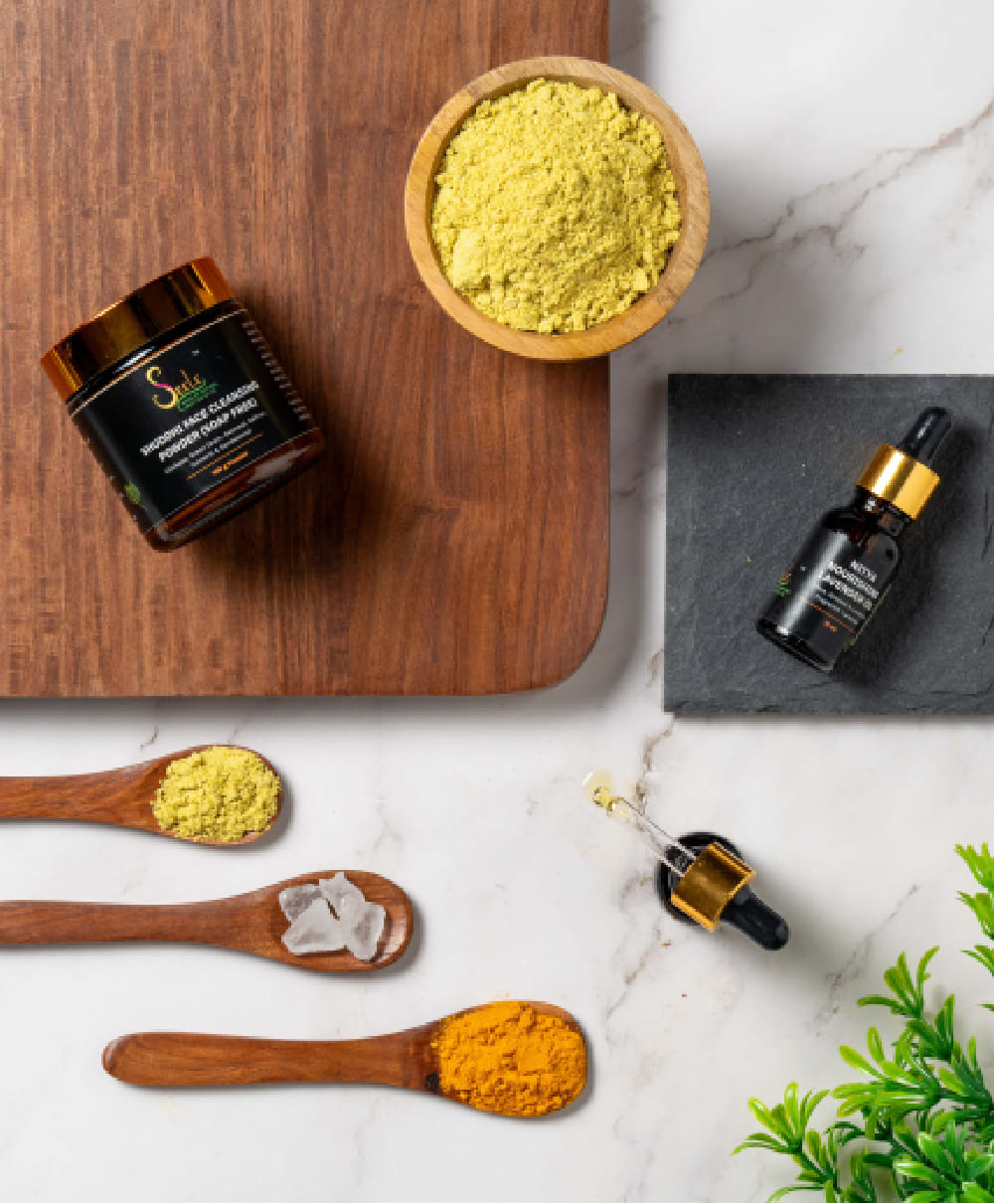 Shuddhi face Cleansing Powder is a 100% natural skincare formulation that returns your facial skin to its inborn radiance. This soap-free, cleansing formula loves your skin back and helps you unearth its natural glow lost to modern lifestyle hazards sich as pollution and stress.