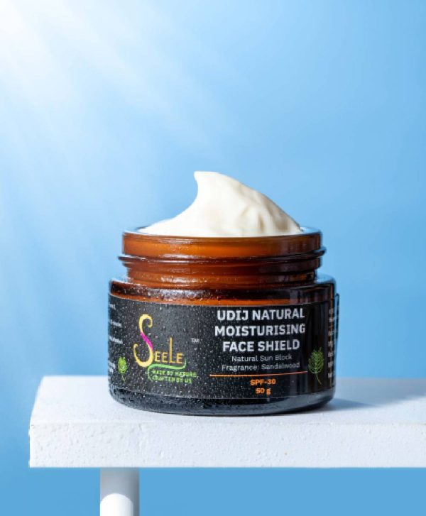 Experience the luxury of sandalwood fragrance in this protective Udij Moisturizing Face Shield. It combines Aloe Vera, olive oil, sesame oil, neem oil, vitamin E, sandalwood oil, sweet almond oil, and essential oils to hydrate, nourish and create a protective layer around your skin against external damage. Improve skin tone, radiance, and enjoy the natural glow while you receive compliments for its velvet touch. Embrace its antioxidant, antibacterial, and antiaging properties for a holistic skin care routine.